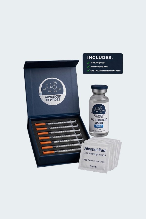 The kit will include:– 10 insulin syringes– 20 alcohol prep pads– One 3 mL vial of bacteriostatic water